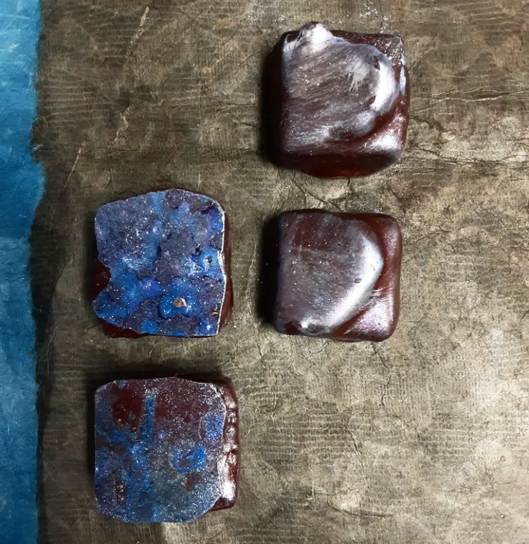 REQUIEM – saffron dark chocolate ganache over cashew gianduja.