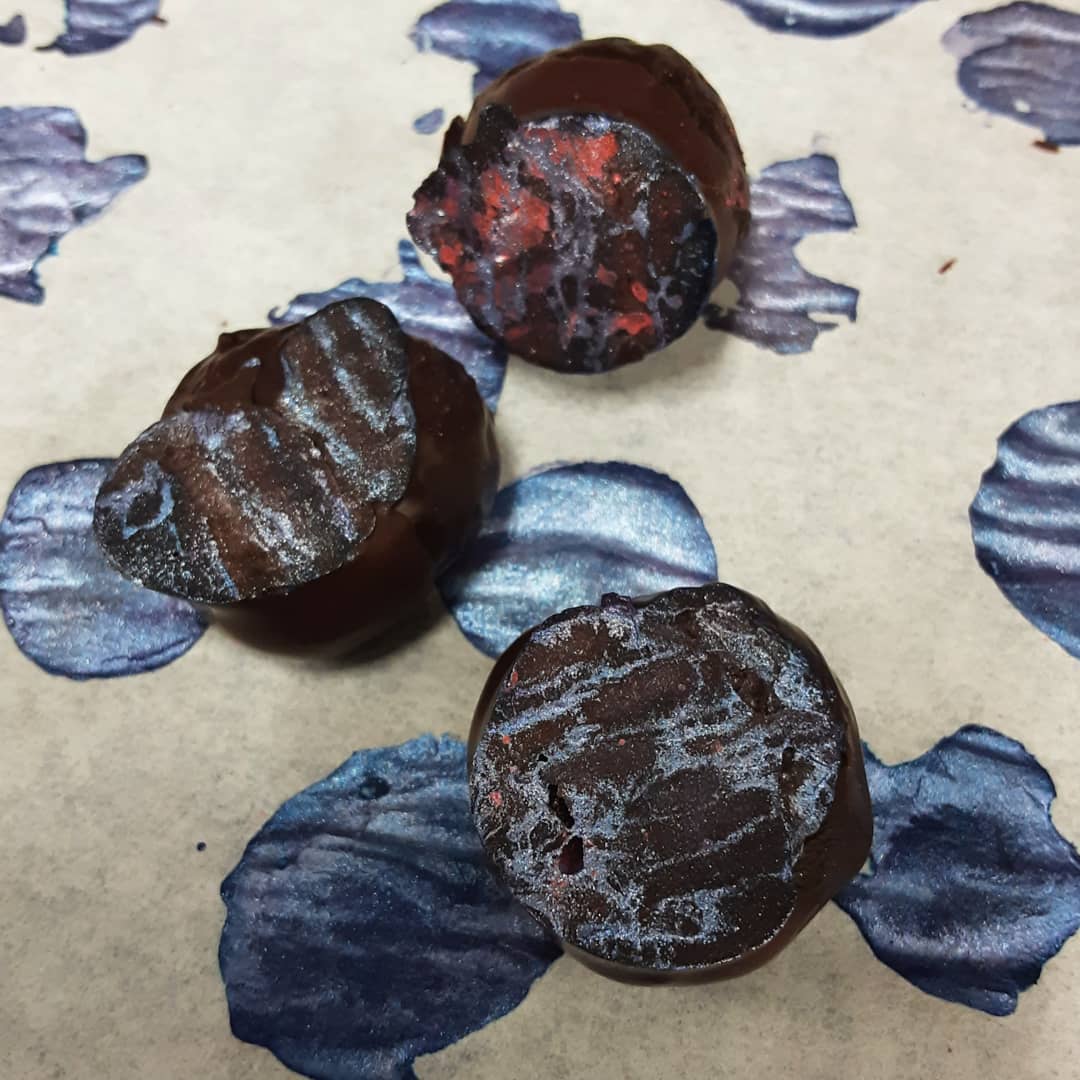 Chocolate Trio Truffle July 16, 2021July 16, 2021What's In My Box RIPPLES IN THE SAND: a truffle of three housemade dark chocolates #chocolatier #beantobonbon #ripples water running, texture created, pebbles rounding, motion stopped. Shop for Chocolate Donate to HCP Help Chocolate Save the World.