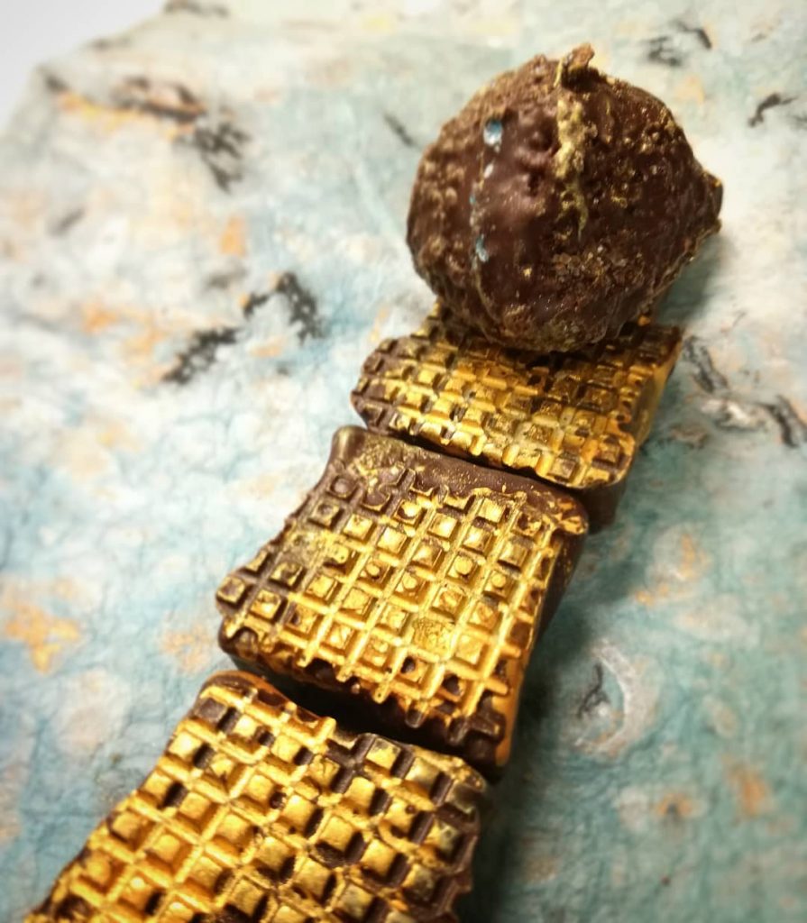 Persian Lime Two Ways December 18, 2018December 18, 2018What's In My Box ROAD TO… PERSIA – (Road to) is Persian dried lime dusted caramel in Puerto Rican dark chocolate, leading to a Persian Lime & Whit Jade truffle.