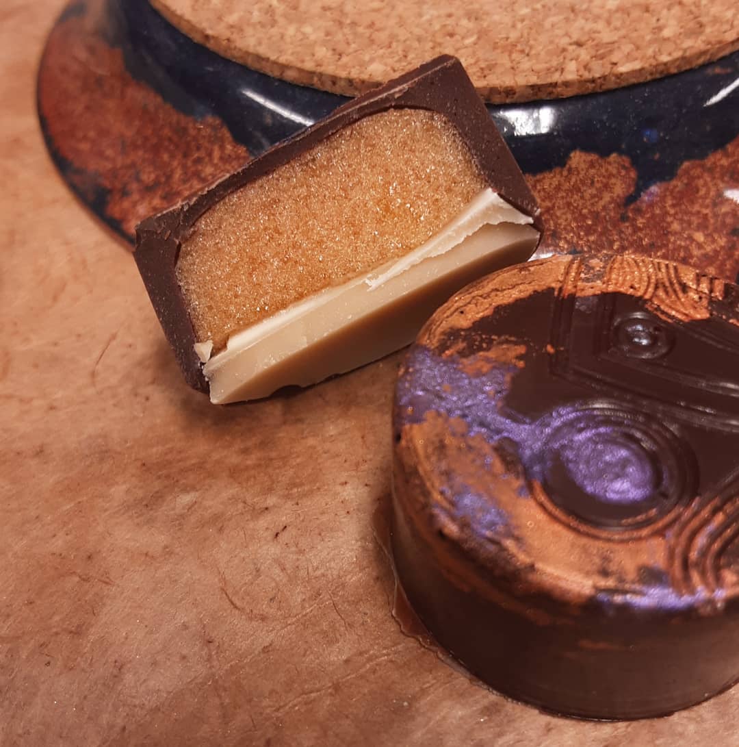 Blood Orange Marshmallow, Wasabi May 20, 2021May 20, 2021What's In My Box SEAFOAM FROM A DIFFERENT PERSPECTIVE: blood orange marshmallow in a dark chocolate shell dusted with Wasabi salt under a Yuzu cap. #chocolatier #wasabi #perspective no eyes to be seen (except in wasabi) and yet even still these bonbons look round Shop for Chocolate