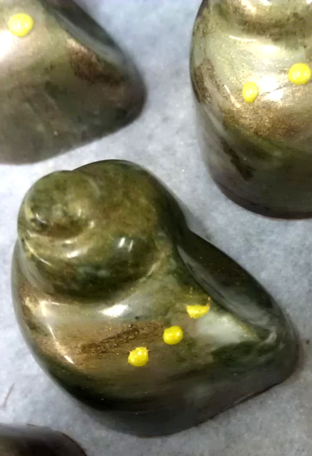 Tart key lime “snail” with Sloe gin ganache and white & dark chocolates.
