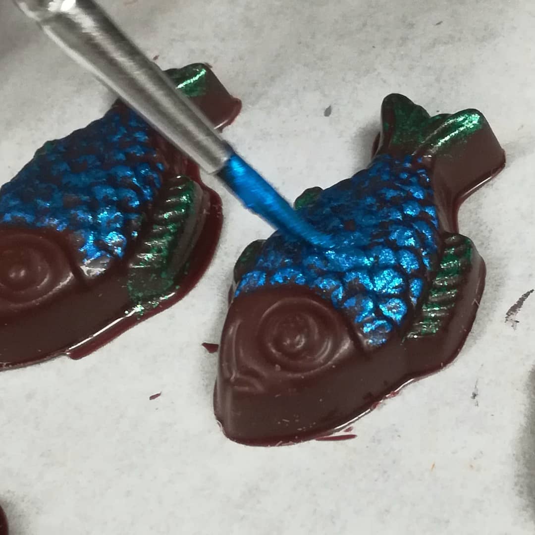 Signature Painted Fish May 14, 2020May 14, 2020What's In My Box Sous chef Donna’s painting FISH. We’ve switched the chocolate to Aponvinces HCP Heirloom No. 10 70%, a rare and special cacao made into chocolate by our friends at Conexion in Ecuador. .#chocolatier #fish #handpainted Buy Boxes Buy Bars Buy Gifts Classes
