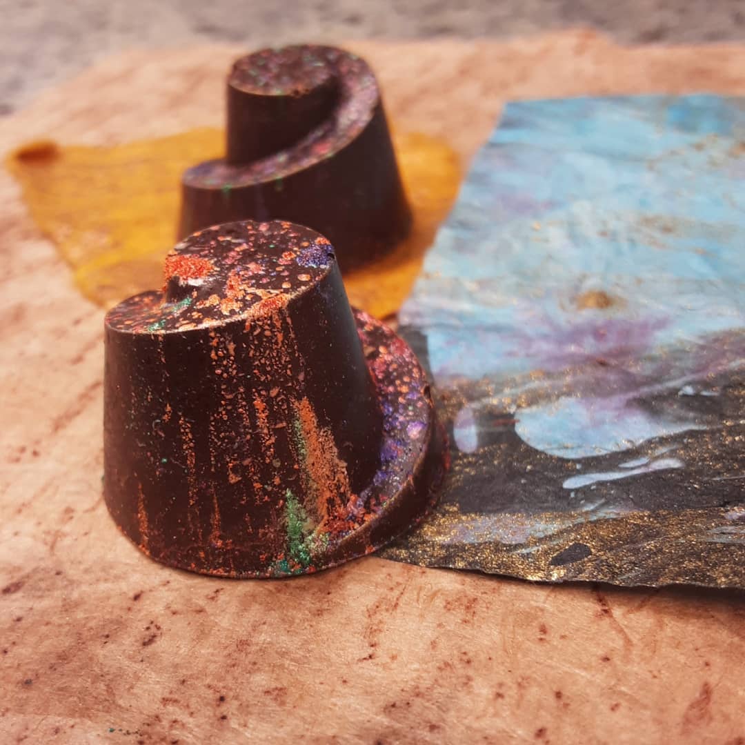 SPATTERS REVEALED: Sorrento lemon cloud caramel and Guatemalan dark ganache in a bright dark chocolate shell.