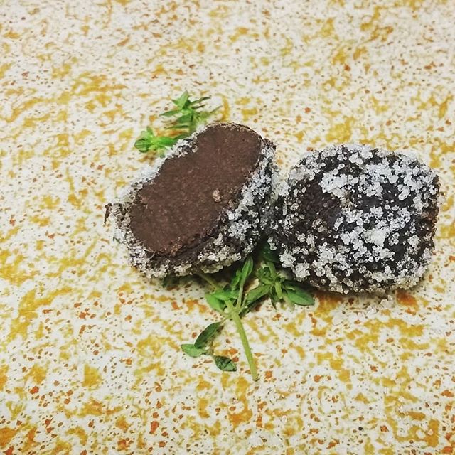 Oregano truffle with tangerine July 10, 2019July 11, 2019What's In My Box TANGERINE – Fresh oregano and Bahibe Dominican milk chocolate ganache hand rolled in Ghana dark chocolate with candied tangerine @valrhonausa #chocolatier #handrolled #madefromscratch #manchesternh #tangerine
