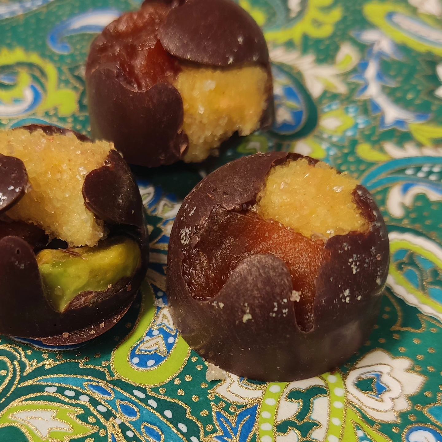 THE LONG HISTORY OF PERSIA – Persian spice and cognac marshmallow with apricot and pistachio in fudgy Mexico Communitario 65% dark milk chocolate.