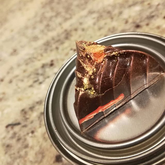 Summer Fruit December 20, 2019December 20, 2019What's In My Box TIGER STRIPE – Milk chocolate and nectarine ganache cast in Liona Dominican Republic 70% dark chocolate studded with kaffir lime and dried apricot. @fruitionchocolate#chocolatier #kaffirlime #triangle #apricots #nectarine #tiger #stripes Buy Boxes Buy Bars Buy Gifts Classes