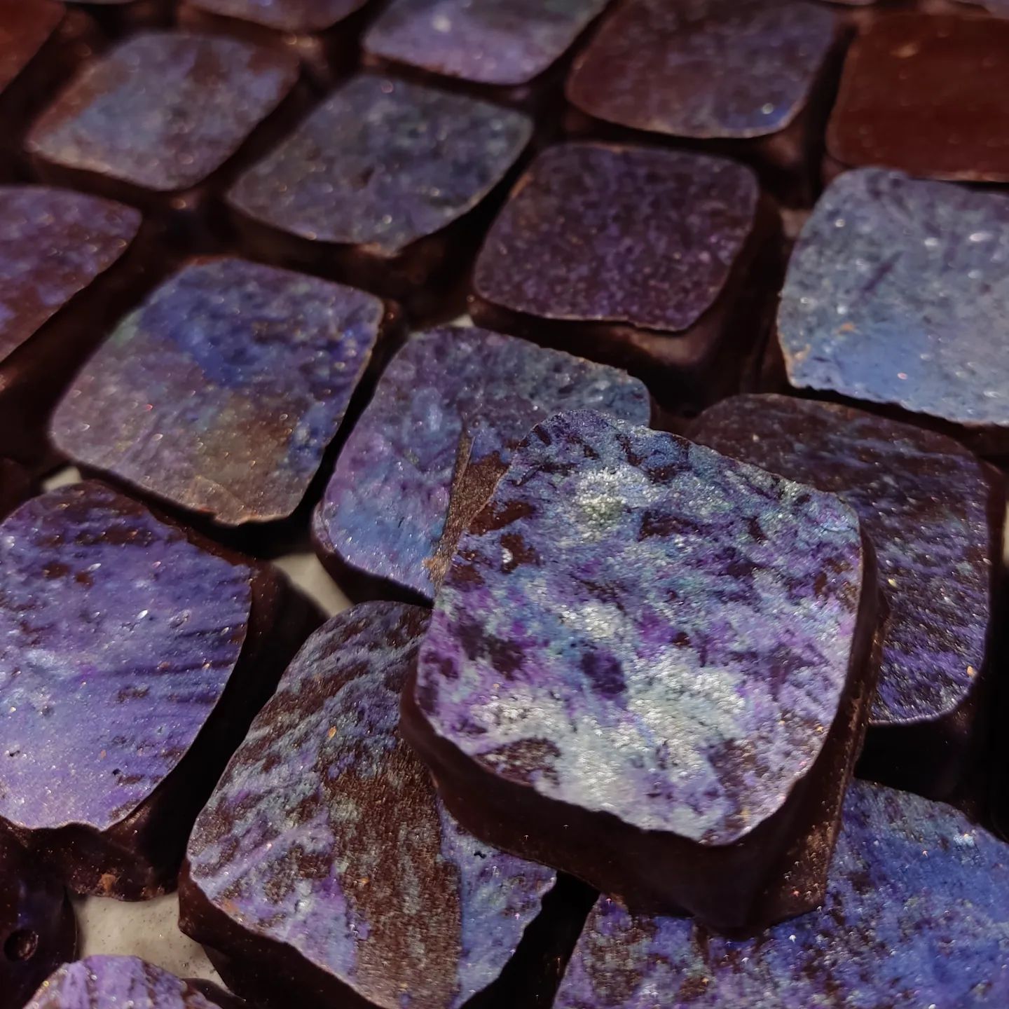 UNCANNY CREATURES – Concord grape and lavender with Tanzania dark milk chocolate hand-dipped in Ecuador dark.