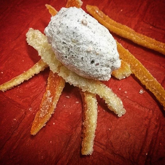 Textural contrast. March 8, 2017March 8, 2017What's In My Box UNEXPECTED – an “unexpected explosion of fruit” was the actual quote. Husk cherries and Nicaraguan 100% dark chocolate ganache enrobed in a crisp shell in white chocolate and blood orange sugar.