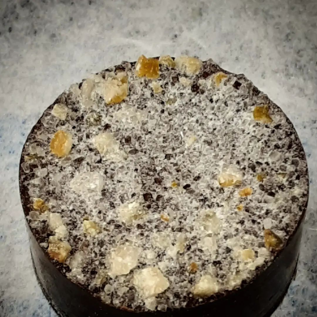 WALLED GARD3N – Saffron, Java turmeric, and house white ganache with a splash of Barr Hill gin finished with yuzu and etrog citron sugars.