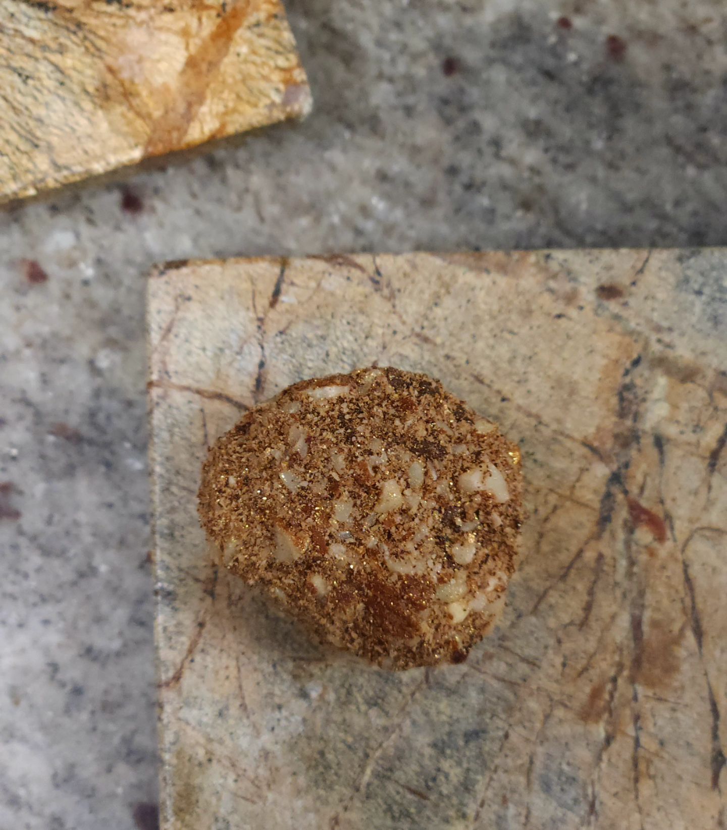 WHAT’S A BEVERAGE: white chocolate ganache rocher with almonds and espresso.
