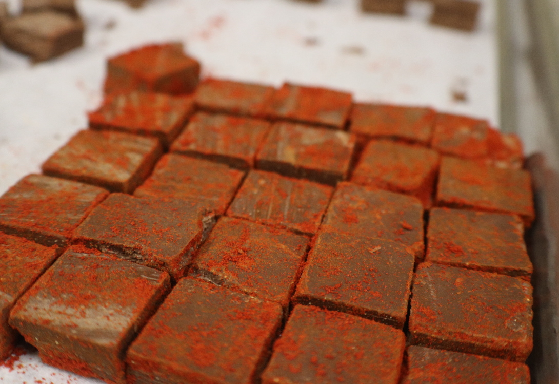 Smoked peanut butter and chocolate meltaways dusted in Spanish smoked paprika
