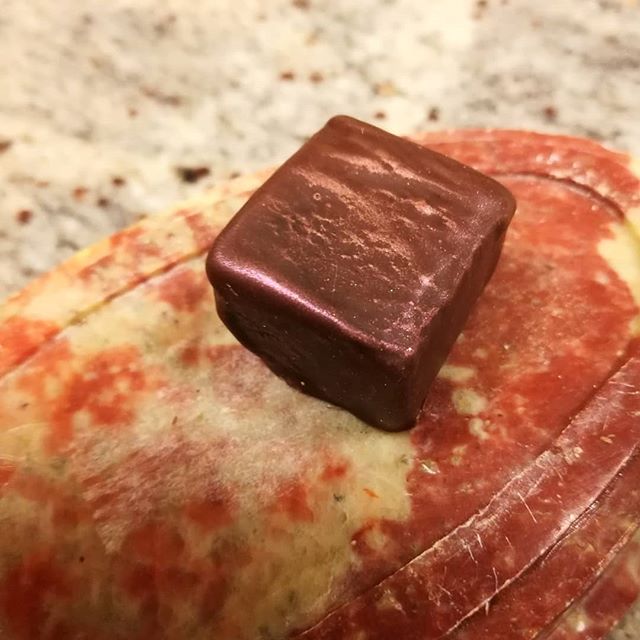 Espresso Caramel April 4, 2019April 12, 2019What's In My Box WITH UNUSAL SUBTLETY – cinnamon and Espresso dusted caramel enrobed in a mix of milk and dark chocolates
