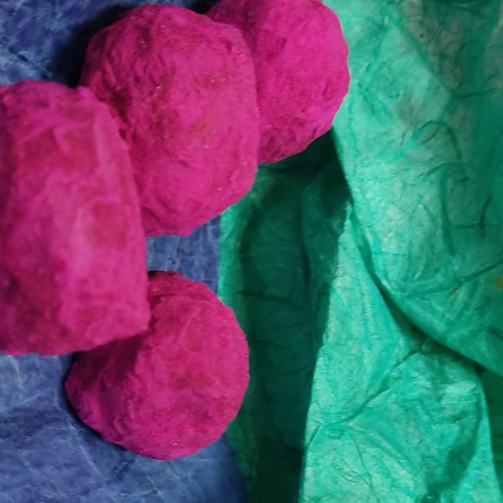 HERE BE DRAGONS – Yuzu white chocolate truffles enrobed in caramel milk chocolate and dusted with powdered dragon fruit.
